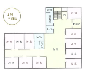 広さの異なる完全個室のお部屋が1階、2階あわせて19室ございます。 ・Aタイプ・2階(10.52㎡):緊急コール/洗面台/エアコン ・Bタイプ・1階(8.62㎡):緊急コール/エアコン