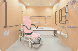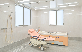 個浴室のほかに、座ったままリフト移動でご入浴いただけるタイプ、寝たままご入浴いただけるタイプの「特別浴室」を完備しています。